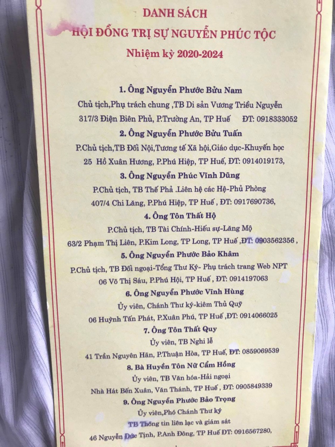 - Và 7 vị cố vấn cho HĐ NPTVN Trong đó có các vị Tôn Thất Quỳnh Thọ, Tôn Thất Viễn Bào, Bửu Hồng, Vĩnh Cao (Huế), Vĩnh Tuần, Nguyễn Tế Ninh (Hà Nội), Bảo Việt, Liên Quốc (Saigon)